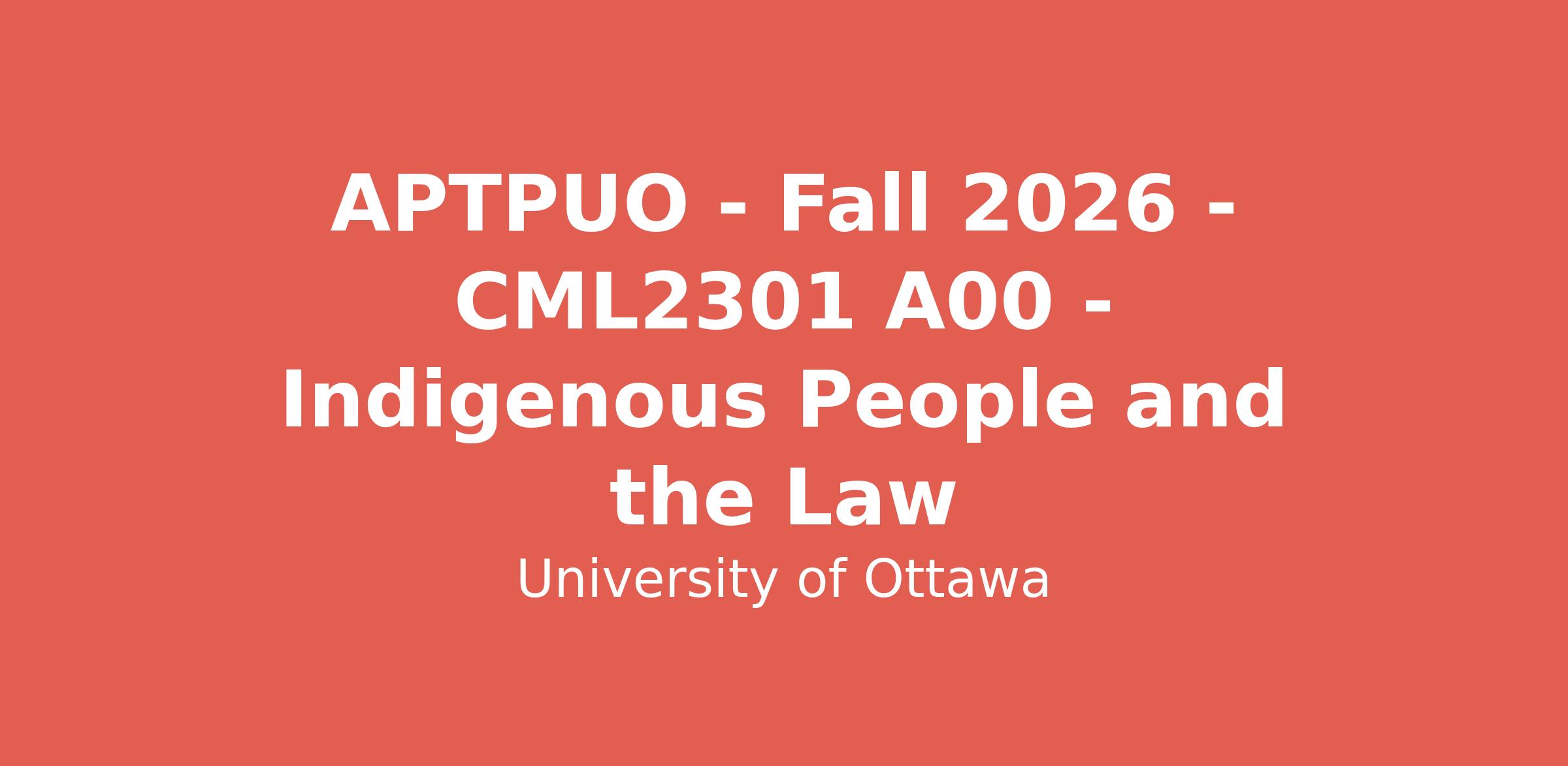 This seminar course examines the unique legal position and perspectives of Indigenous peoples in Canadian and Indigenous law, specifically Aboriginal Title; Aboriginal and treaty rights, land claims and self-government agreements; the fiduciary obligations of federal and provincial governments; recognition of Indigenous legal orders and governance; and international developments. Some comparative analysis of Indigenous rights in other countries within an international legal framework, may be undertaken.Posting limited to: