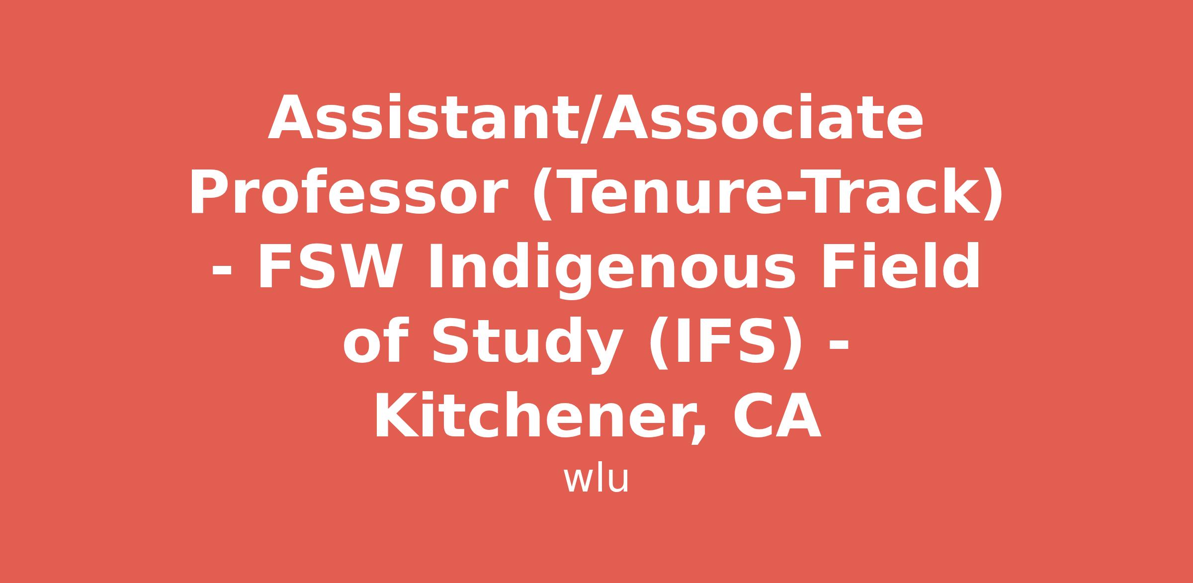 The Lyle S. Hallman Faculty of Social Work (FSW) at Wilfrid Laurier University invites applications for one Assistant Professor or Associate Professor tenure-track First Nations, Métis, or Inuit (FNMI) scholar faculty position commencing July 1, 2026, subject to budgetary approval. The position is based at Laurier’s Kitchener site and includes teaching (4 courses per academic year), research, and service responsibilities within the Master of Social Work (MSW) Indigenous Field of Study (IFS). The successful candidate will join a growing community of Indigenous faculty across Laurier’s campuses and within the IFS.