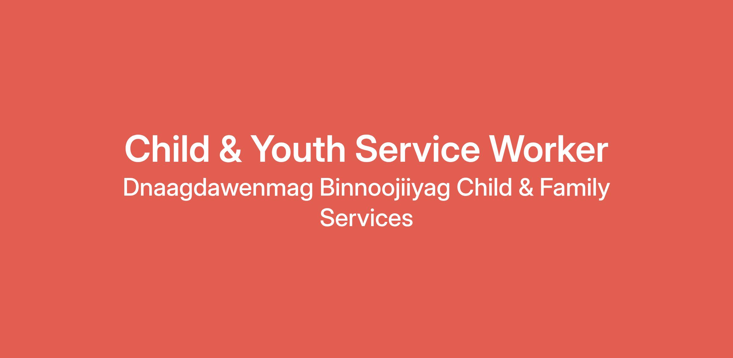 - The Child & Youth Service Worker is responsible for ensuring the provision of quality service to children in the care of Dnaagdawenmag Binnoojiiyag Child and Family Services.