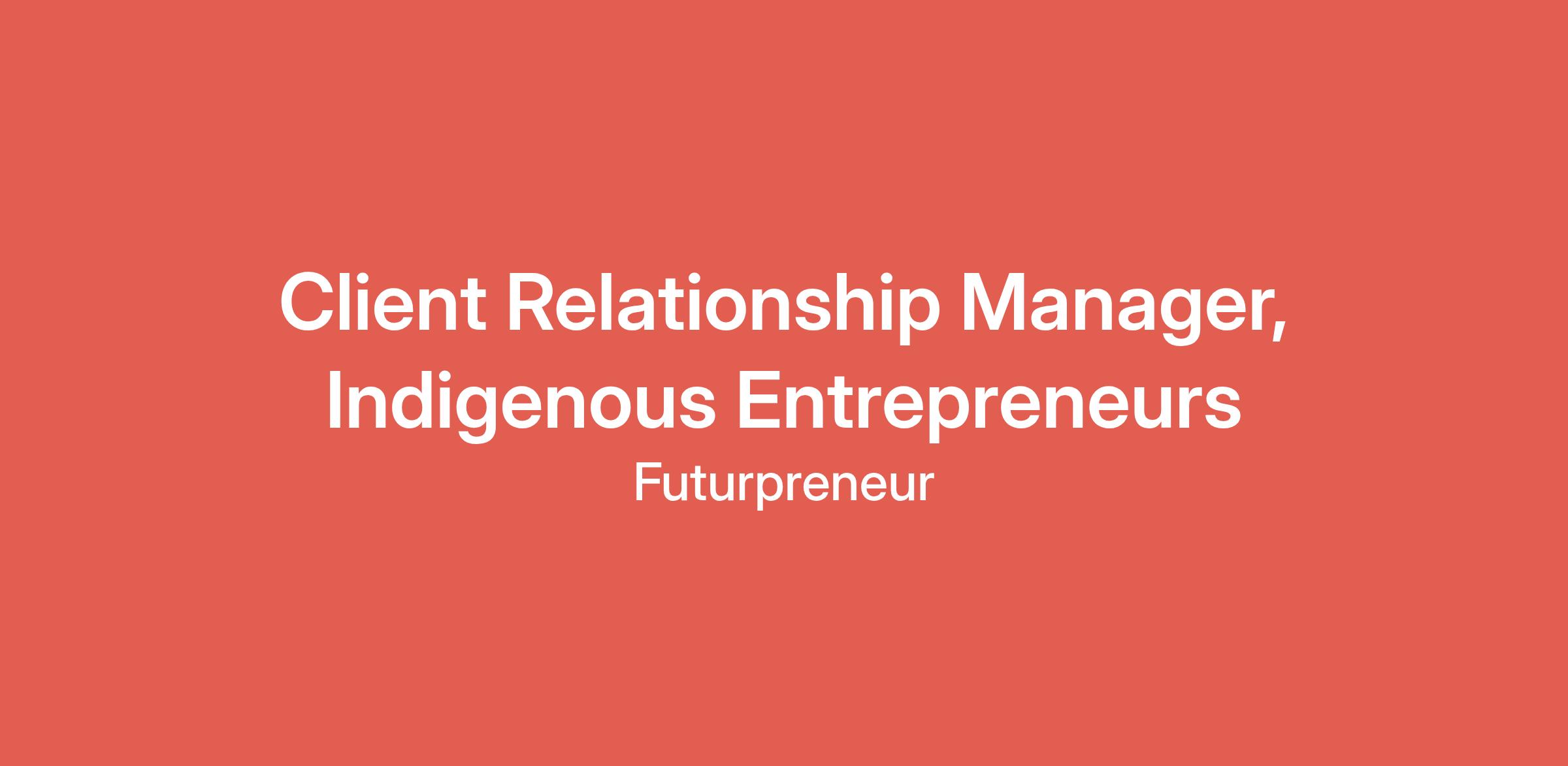 Here’s the opportunity: Client Relationship Manager, Indigenous Entrepreneurs