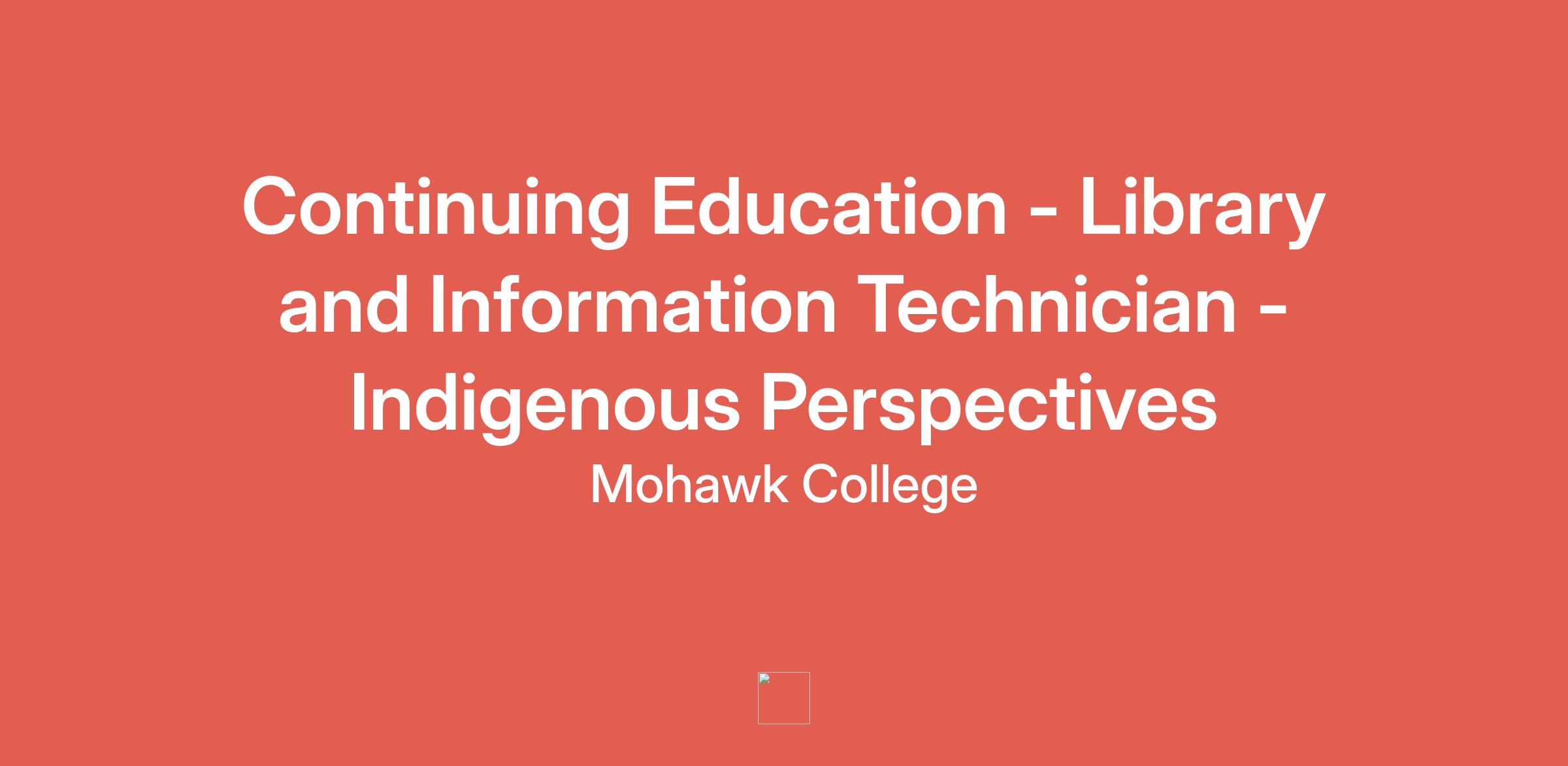 Continuing Education - Library and Information Technician - Indigenous Perspectives