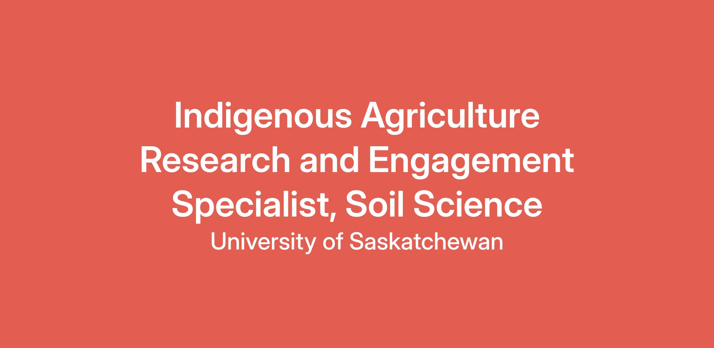 Indigenous Agriculture Research and Engagement Specialist, Soil Science