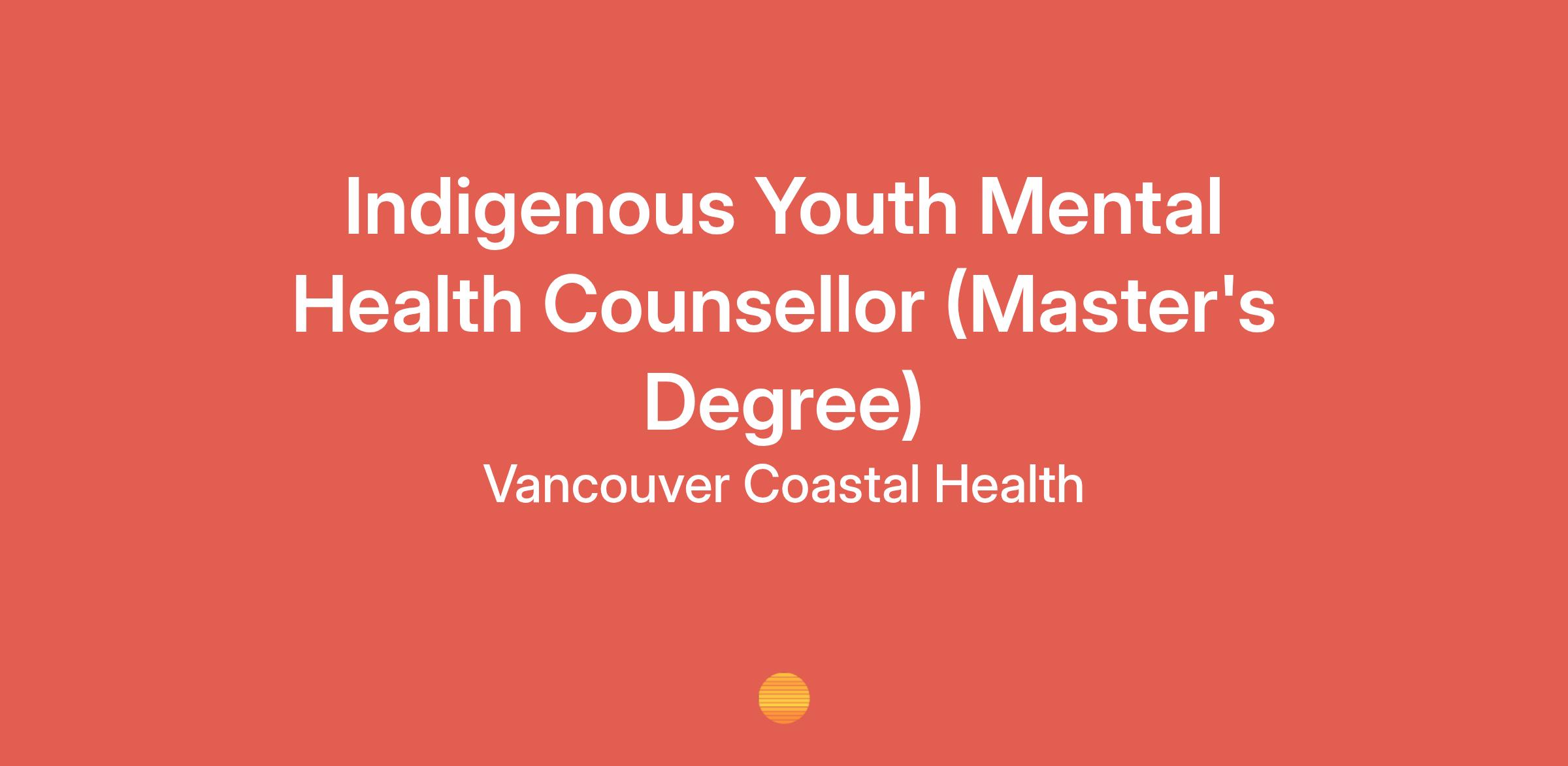 Come work as an Indigenous Mental Health Counsellor, Youth Development, with Vancouver Coastal Health (VCH)!