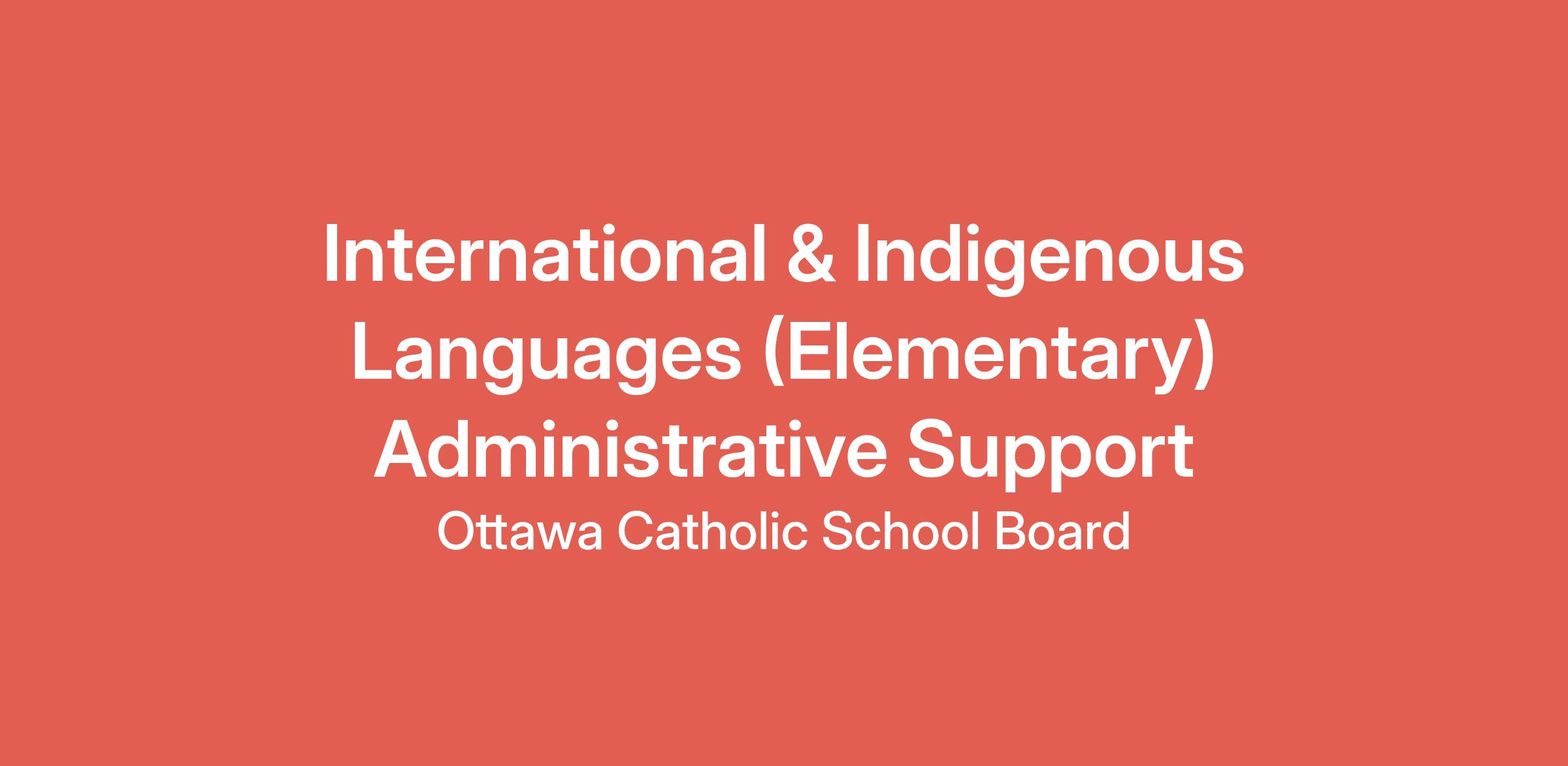 The Ottawa Catholic School Board invites applications from candidates interested in being considered for the International and Indigenous Languages (Elementary) Program Administrative Support positions and supply positions, which may become available during the 2025-2026 school year. The International and Indigenous Language Elementary Program runs from 9:00 a.m. to 12:00 p.m. for 32 Saturdays from September to June.
