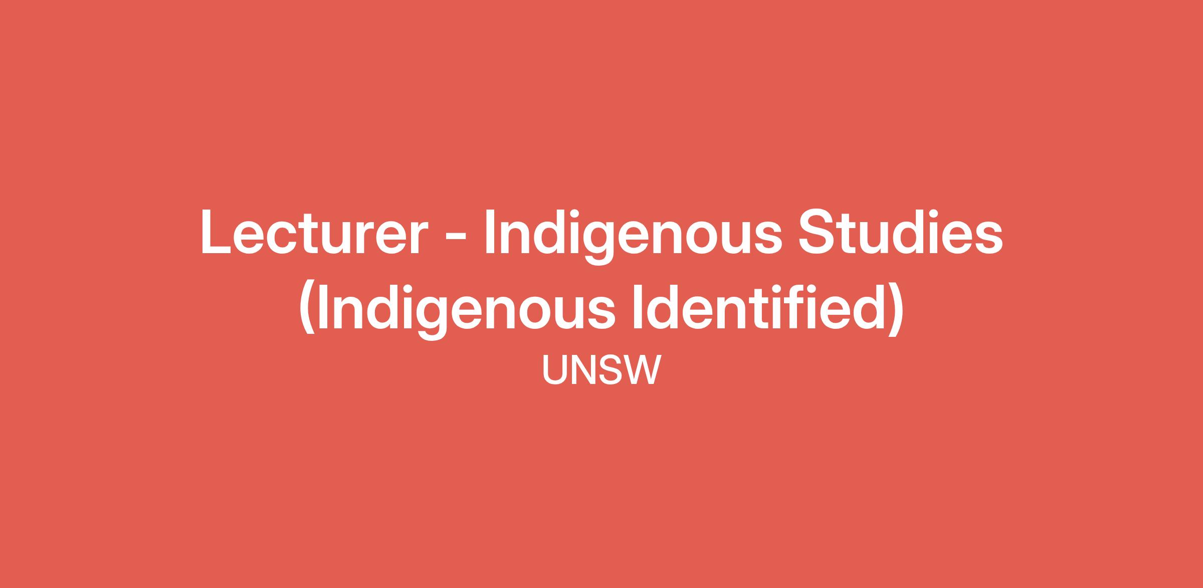 Lecturer - Indigenous Studies (Indigenous Identified)