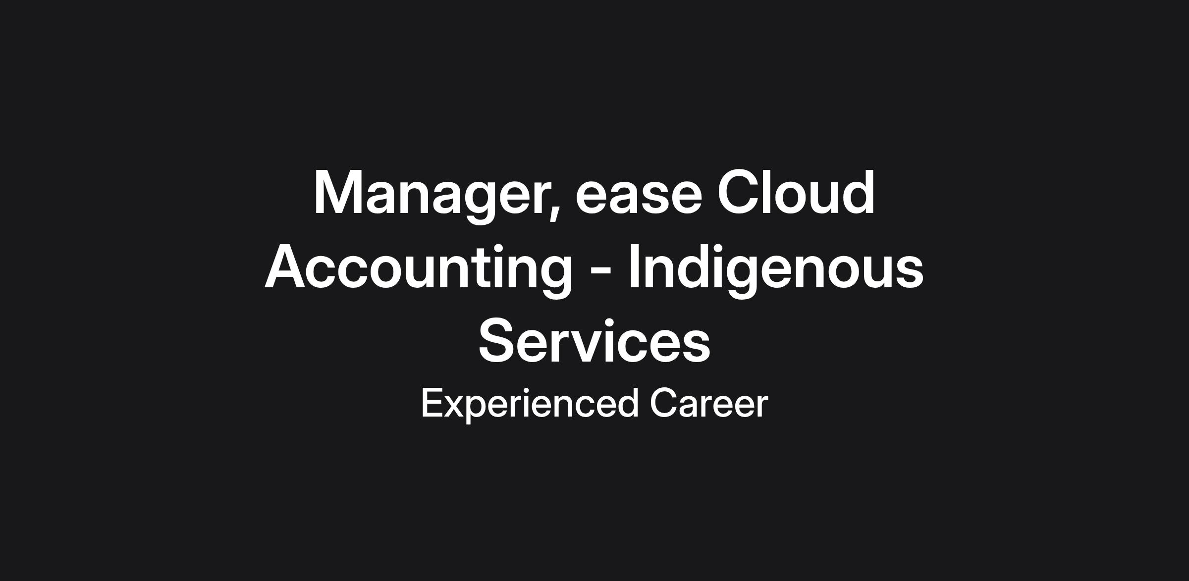 Make an impact with our Indigenous ease Cloud Accounting Services team as a Manager. As a trusted advisor, you’ll use cutting-edge technology to deliver a full suite of services, including accounts payable, accounts receivable, bookkeeping, financial reporting and payroll administration.