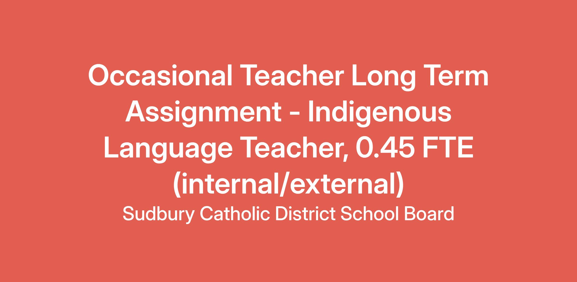 For external candidates, please apply and submit a completed Catholic Teacher Application found on our website www.sudburycatholicschools.ca.