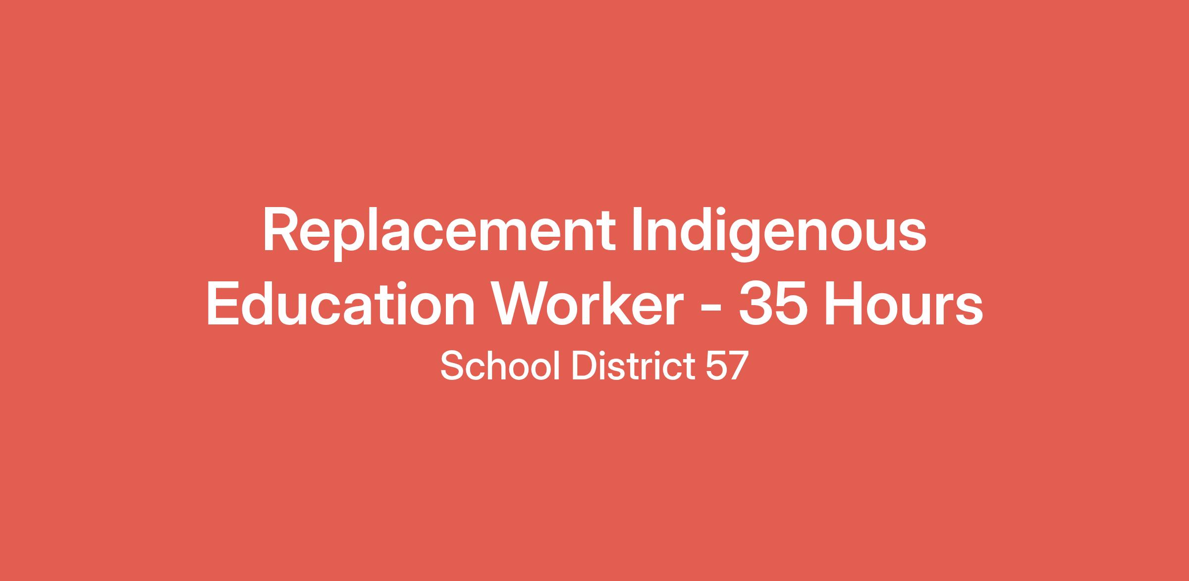 TITLE: REPLACEMENT INDIGENOUS EDUCATION WORKER - 35 Hours