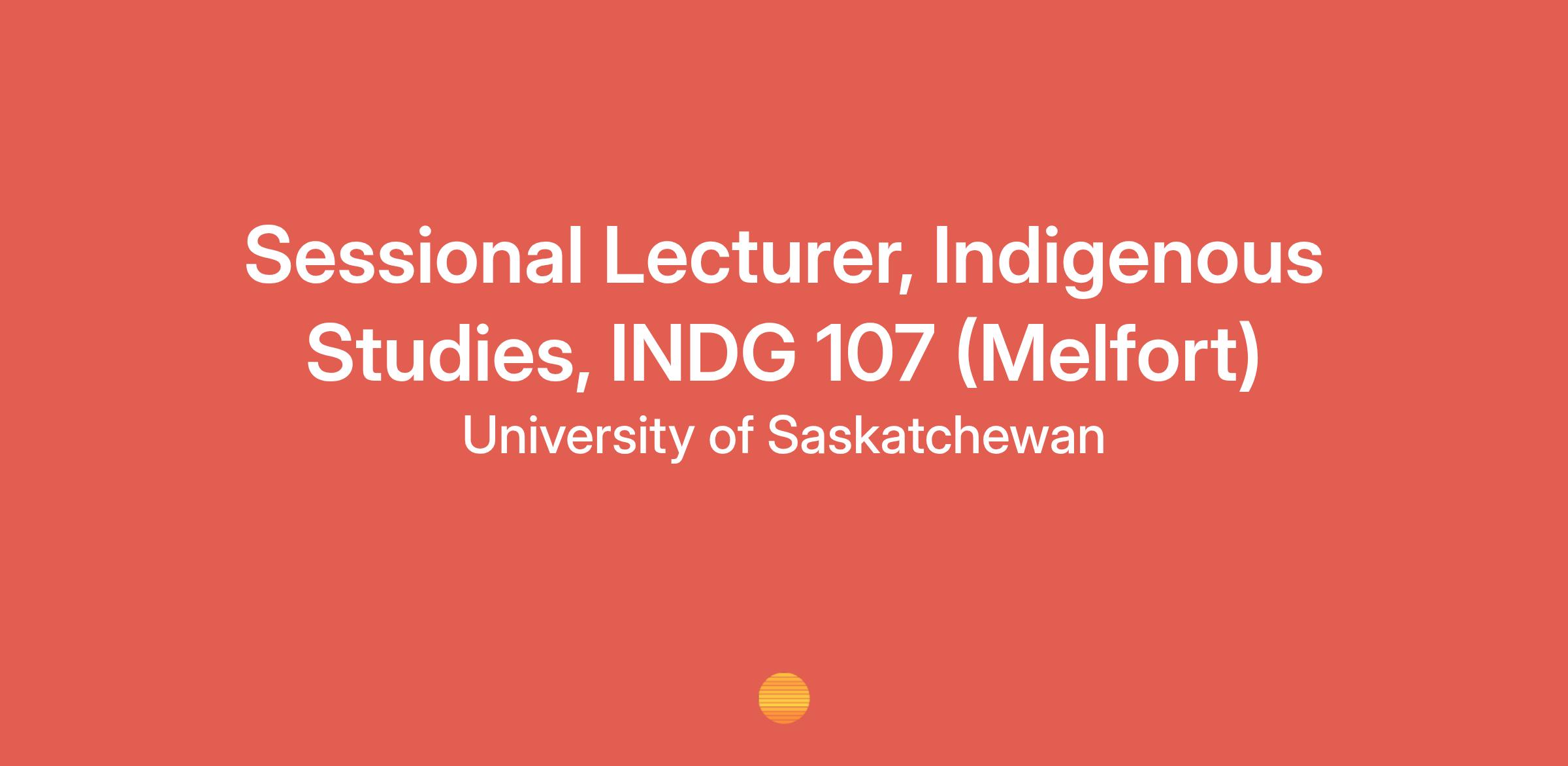 The Department of Indigenous Studies in the College of Arts and Science and the Gwenna Moss Centre for Teaching and Learning invite applications for a Sessional Lecturer to teach the following off-campus courses during the following session(s): 2025-2026 Regular Session A valid driver’s license is required for any off-campus courses. Appointment periods include additional days in recognition of preparation and marking time required. Courses may be cancelled due to low enrolment. Application Process: