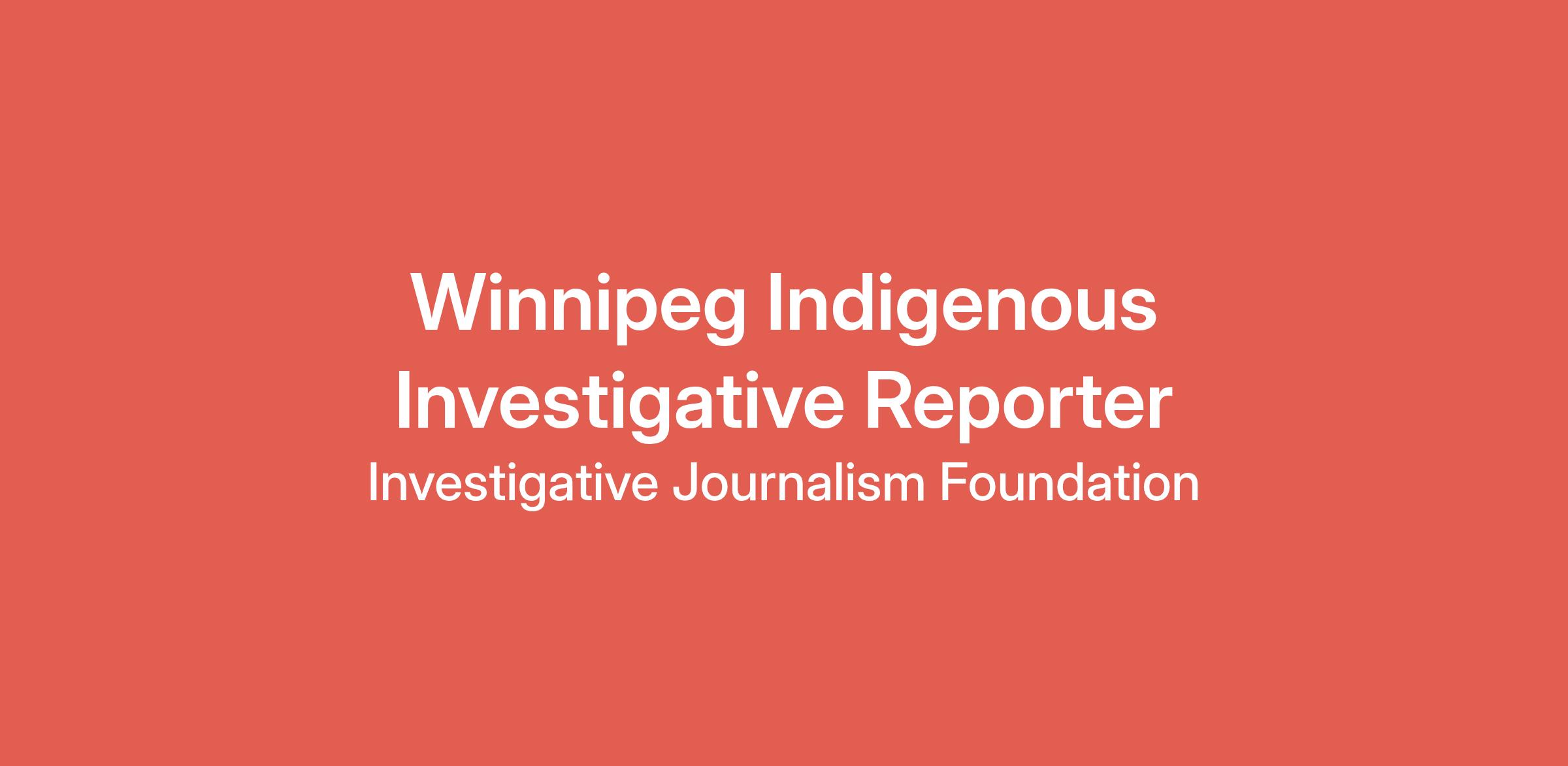 Winnipeg Indigenous and Civic Affairs Investigative Reporter, Investigative Journalism Foundation